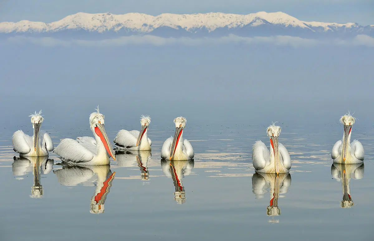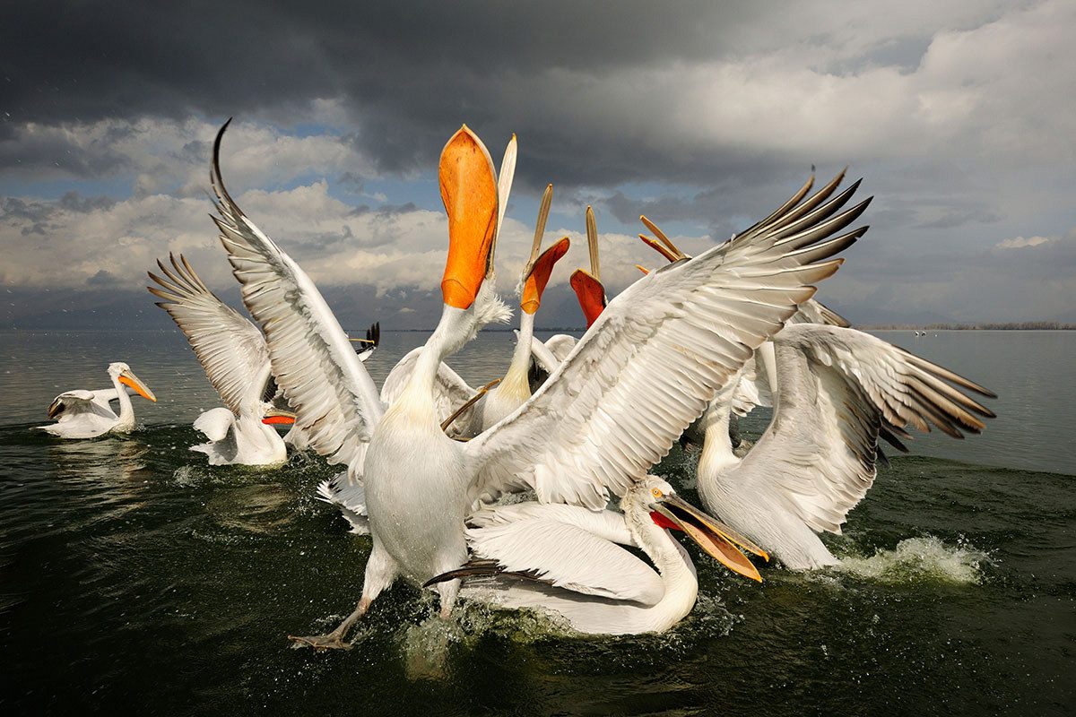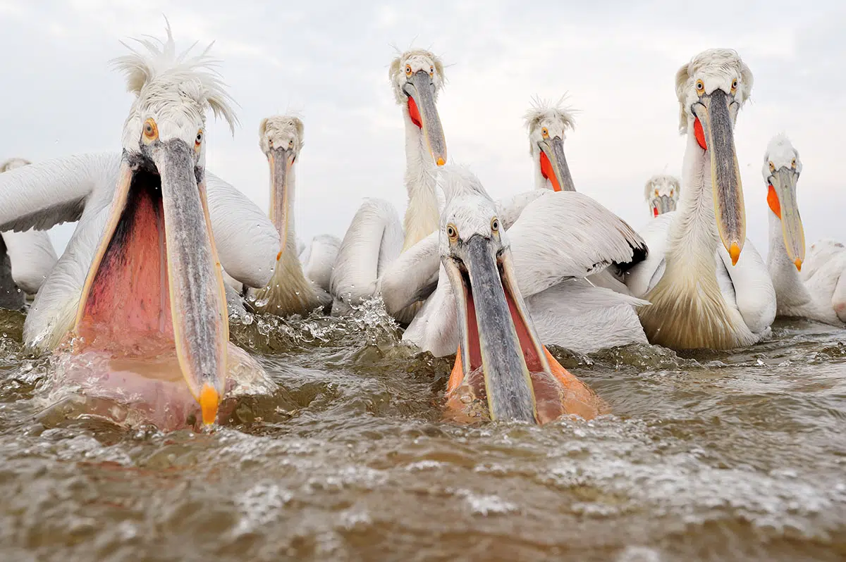 Before the Dalmatian pelicans breed, they gather on Lake Kerkini in Greece. We spend several days on the lake, photographing this once extinct species. And we go all the way, using every lens possible. Yes, even wide-angle!