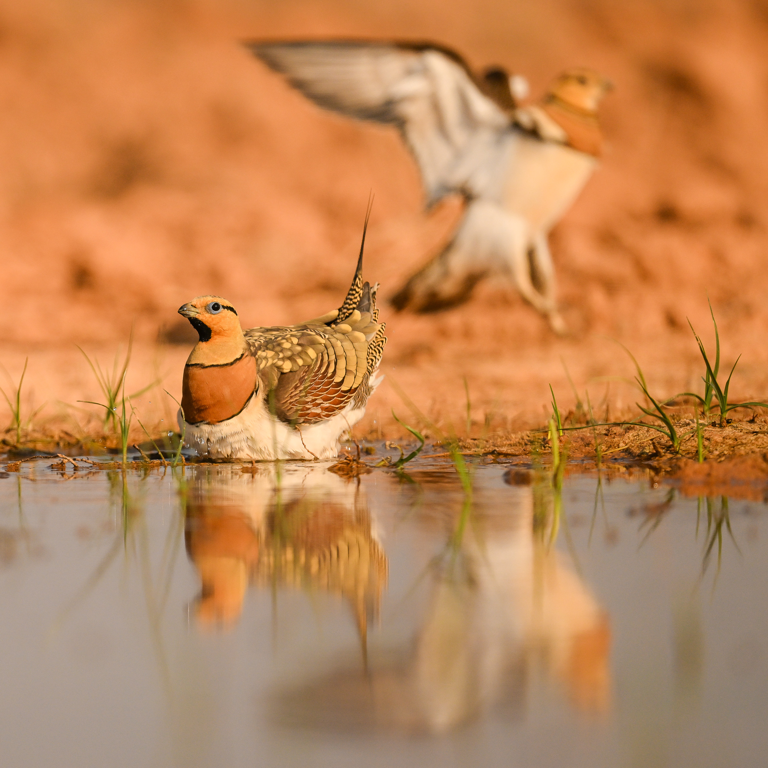 Our targets are the black-bellied and white-bellied sandgrouse. Again, we use a rotation system. Around midday, we return to the hotel for lunch. Then we have a few free hours, followed by an evening backlight session from our hides.